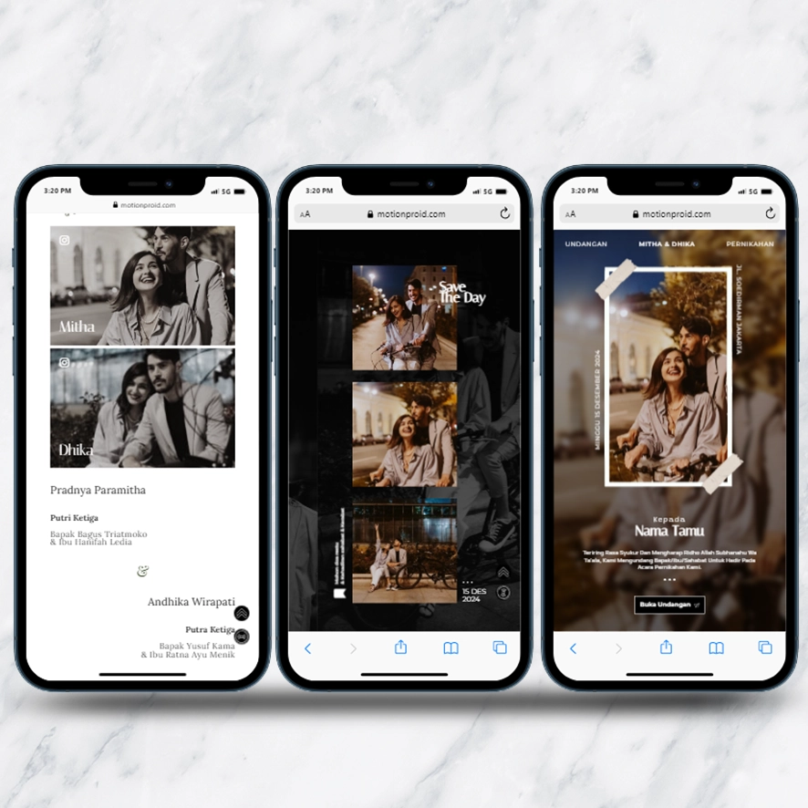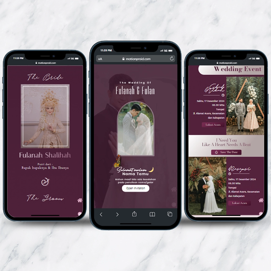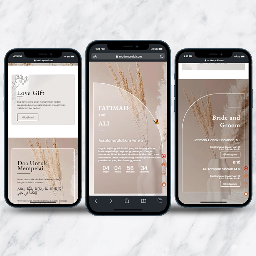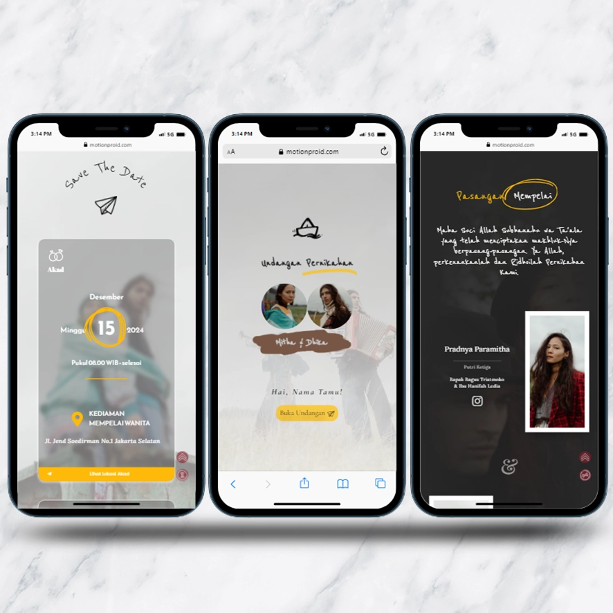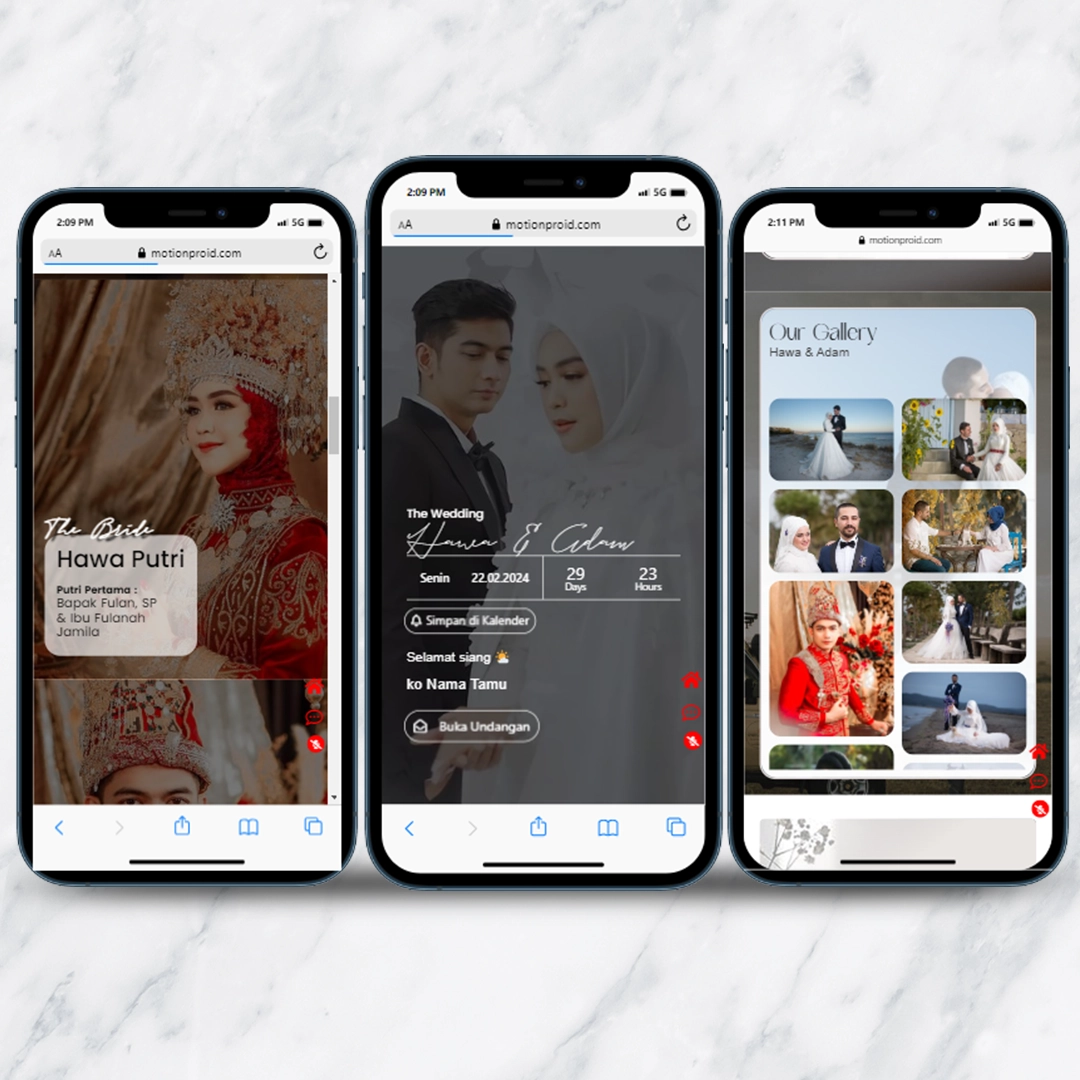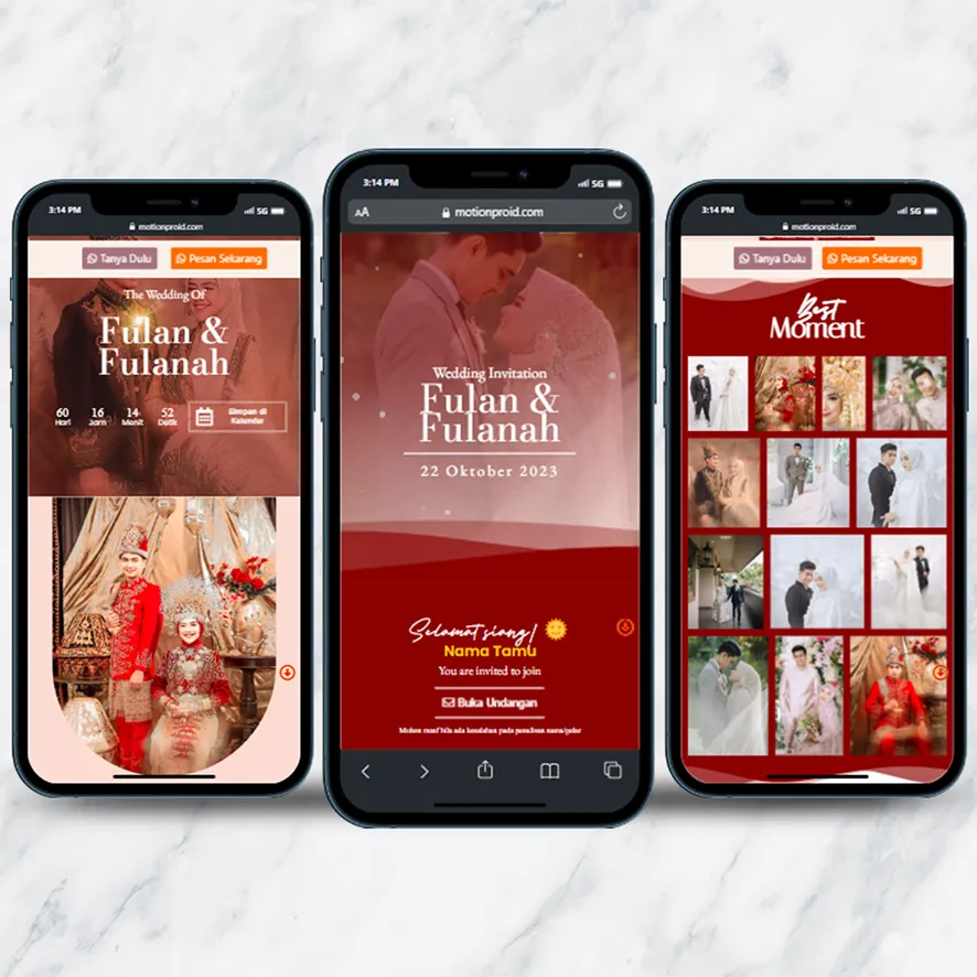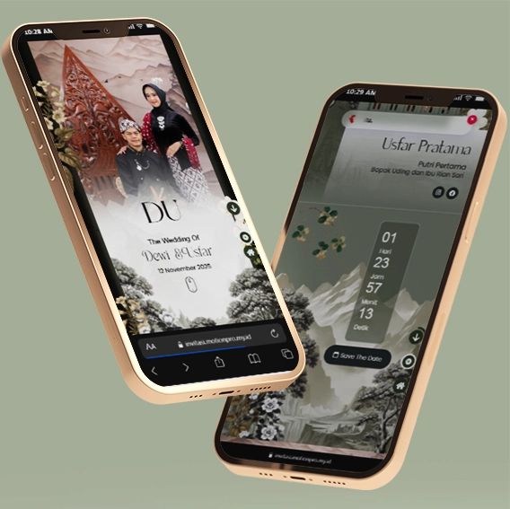 Kami sebagai vendor pembuat undangan pernikahan berbasis website dengan nuansa minimalis dan elegan, akan mempermudah calon mempelai berbagi momen spesial dengan simpel dan mudah.