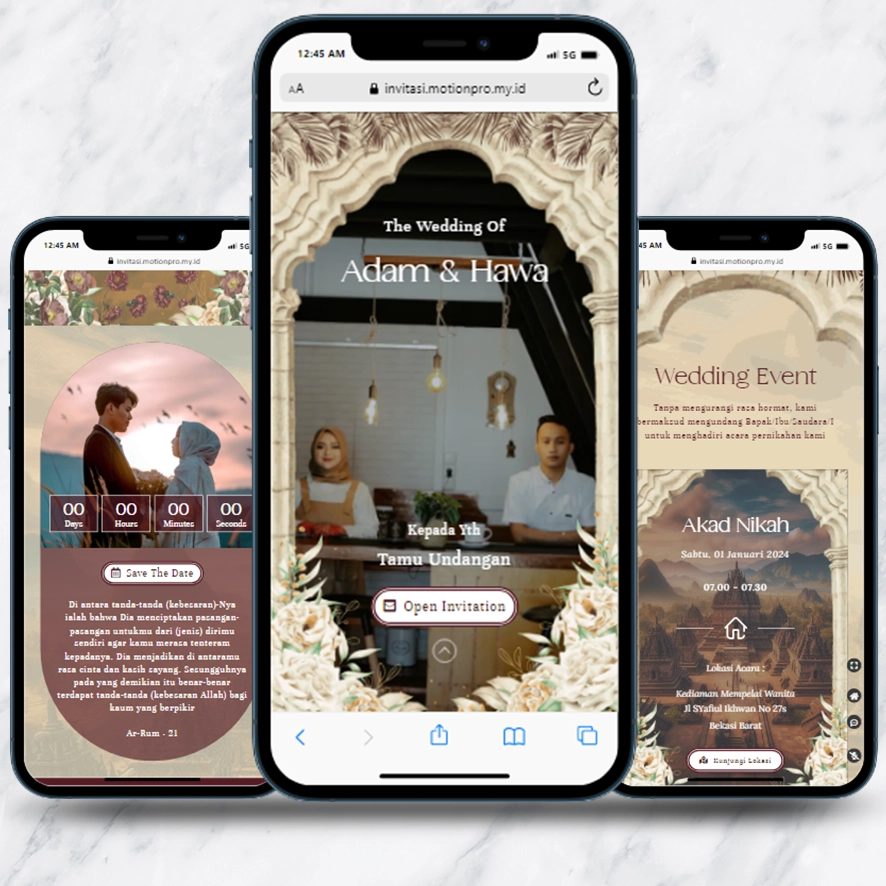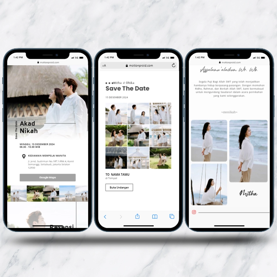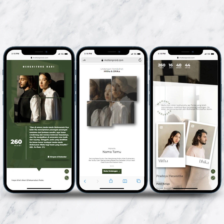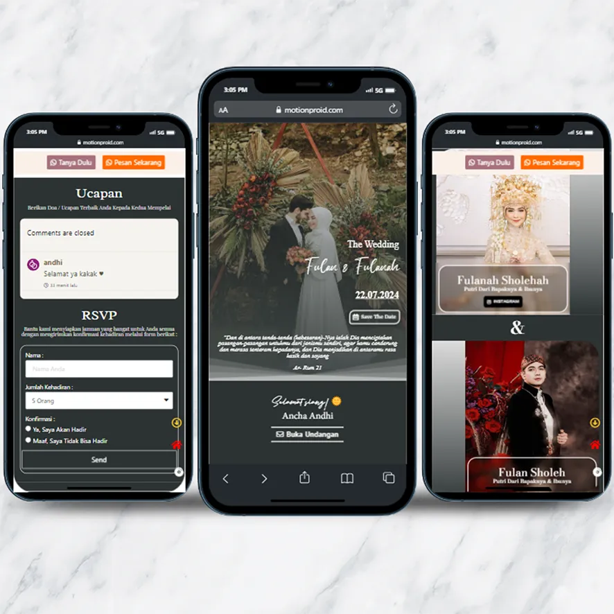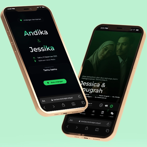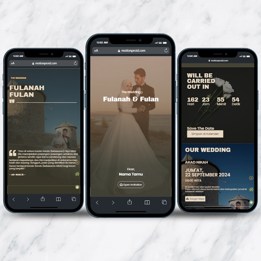 Kami sebagai vendor pembuat undangan pernikahan berbasis website dengan nuansa minimalis dan elegan, akan mempermudah calon mempelai berbagi momen spesial dengan simpel dan mudah.
