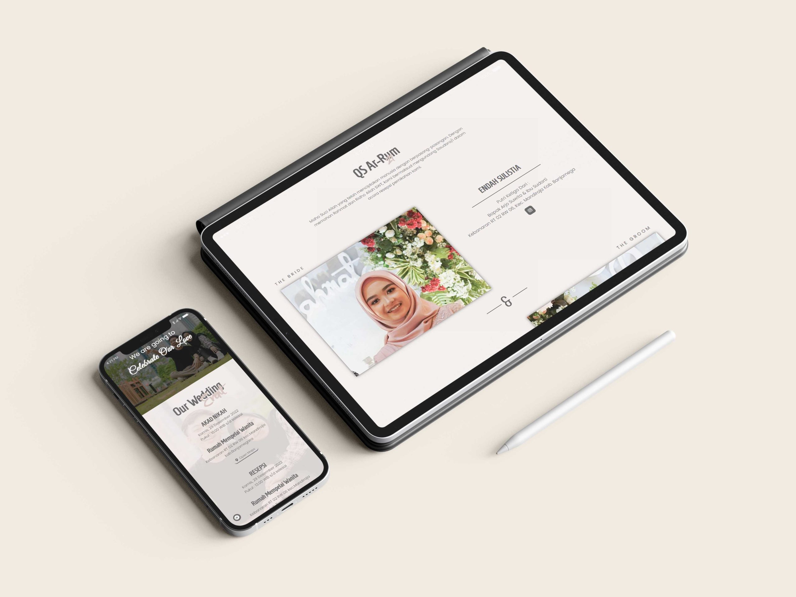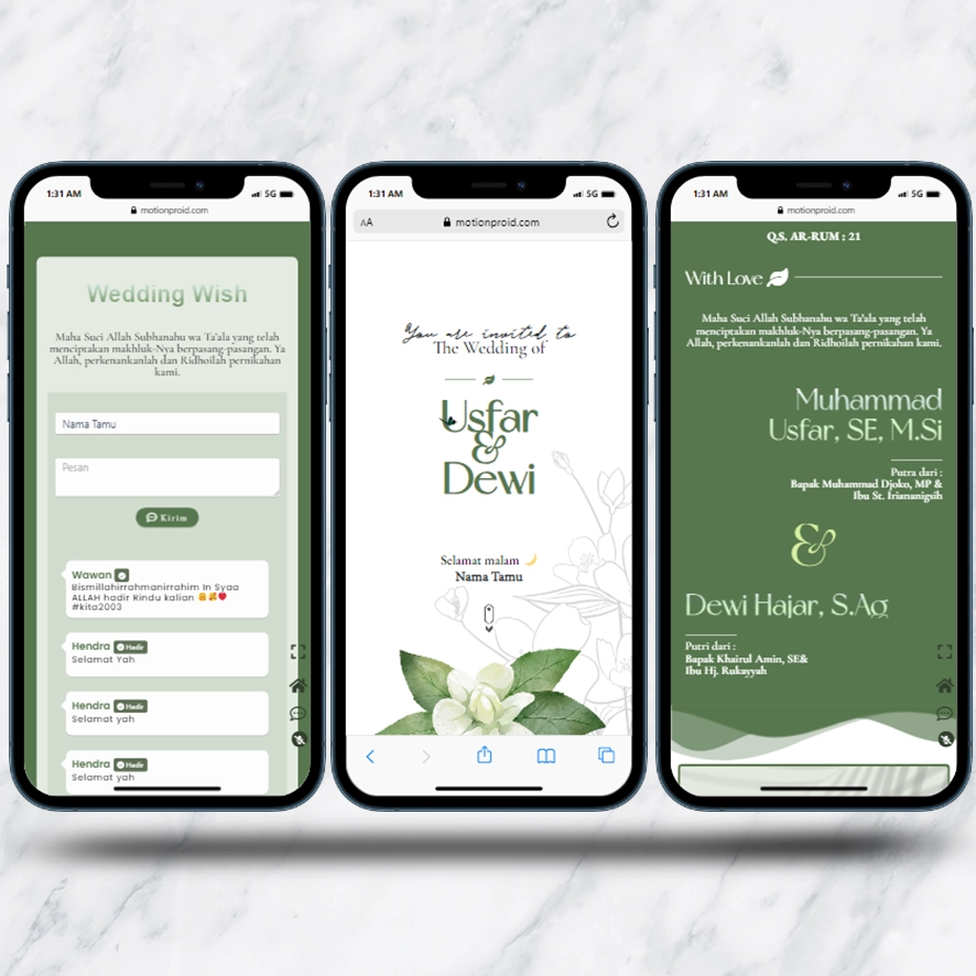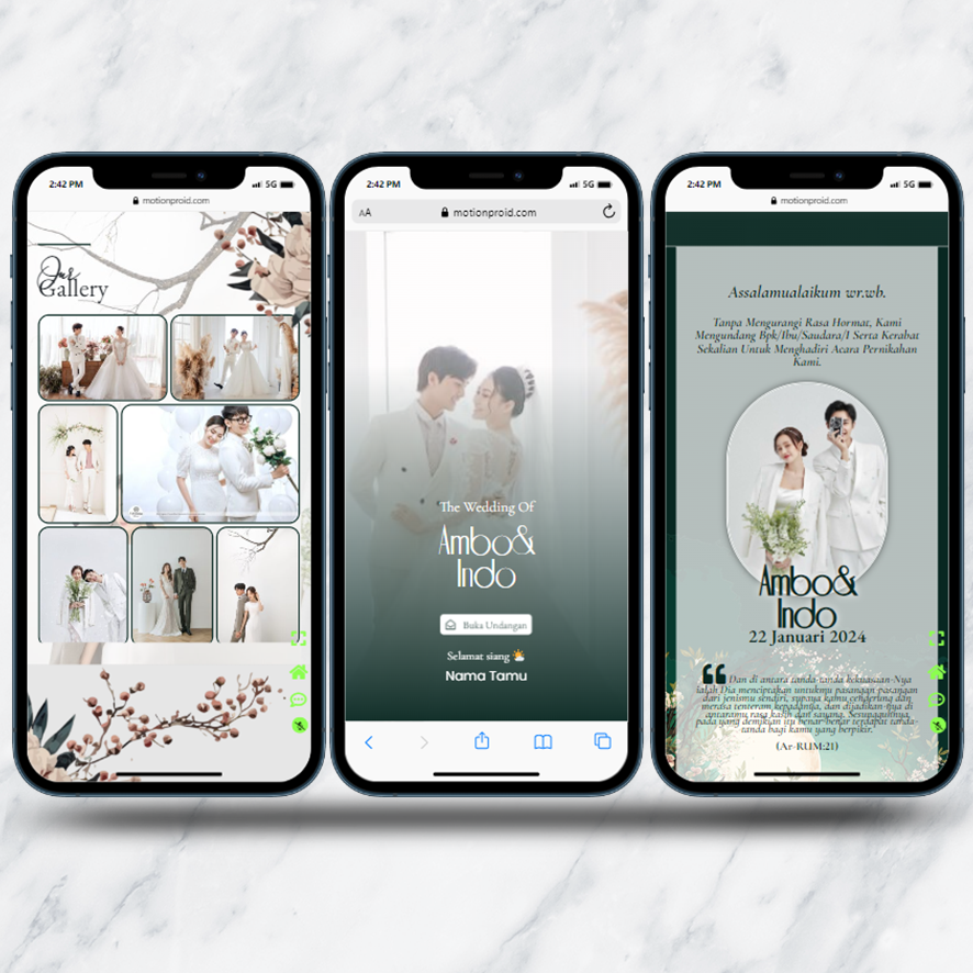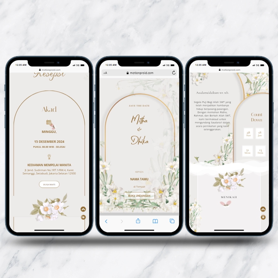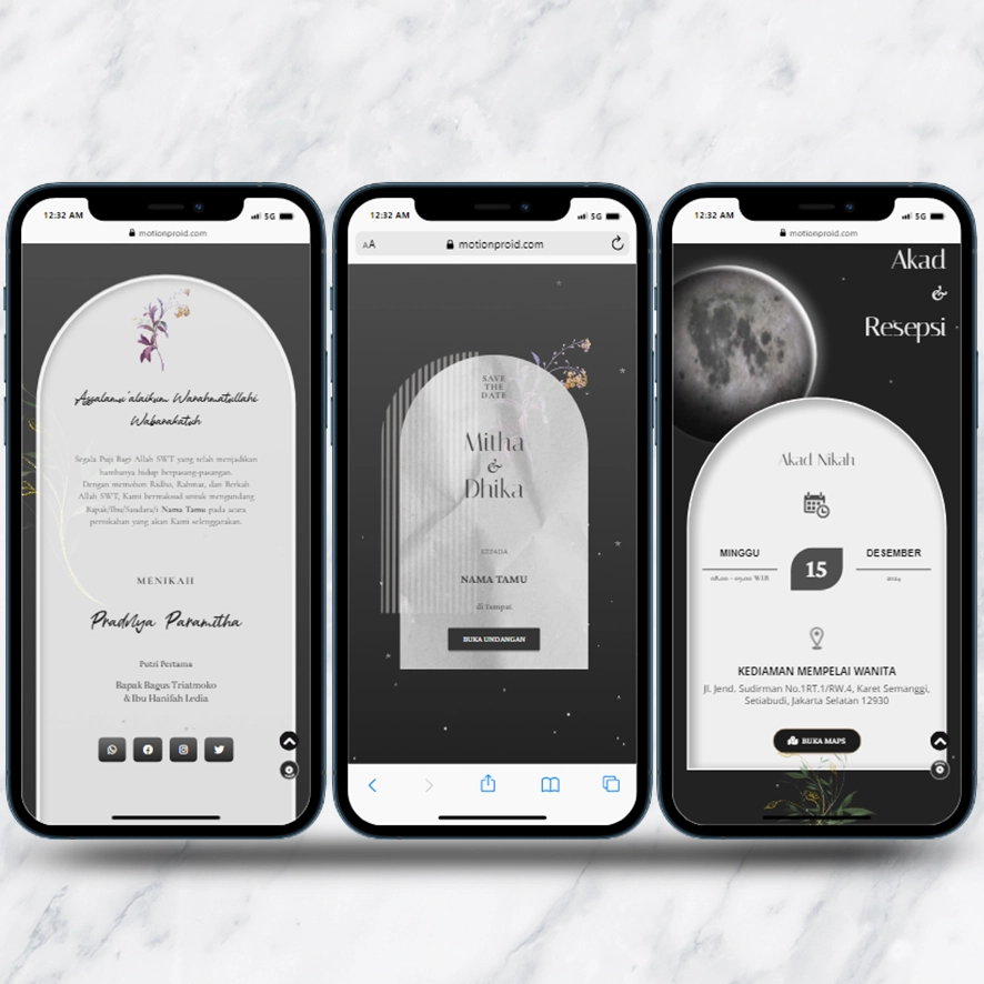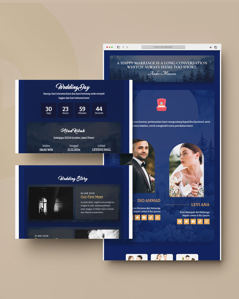 Kami sebagai vendor pembuat undangan pernikahan berbasis website dengan nuansa minimalis dan elegan, akan mempermudah calon mempelai berbagi momen spesial dengan simpel dan mudah.